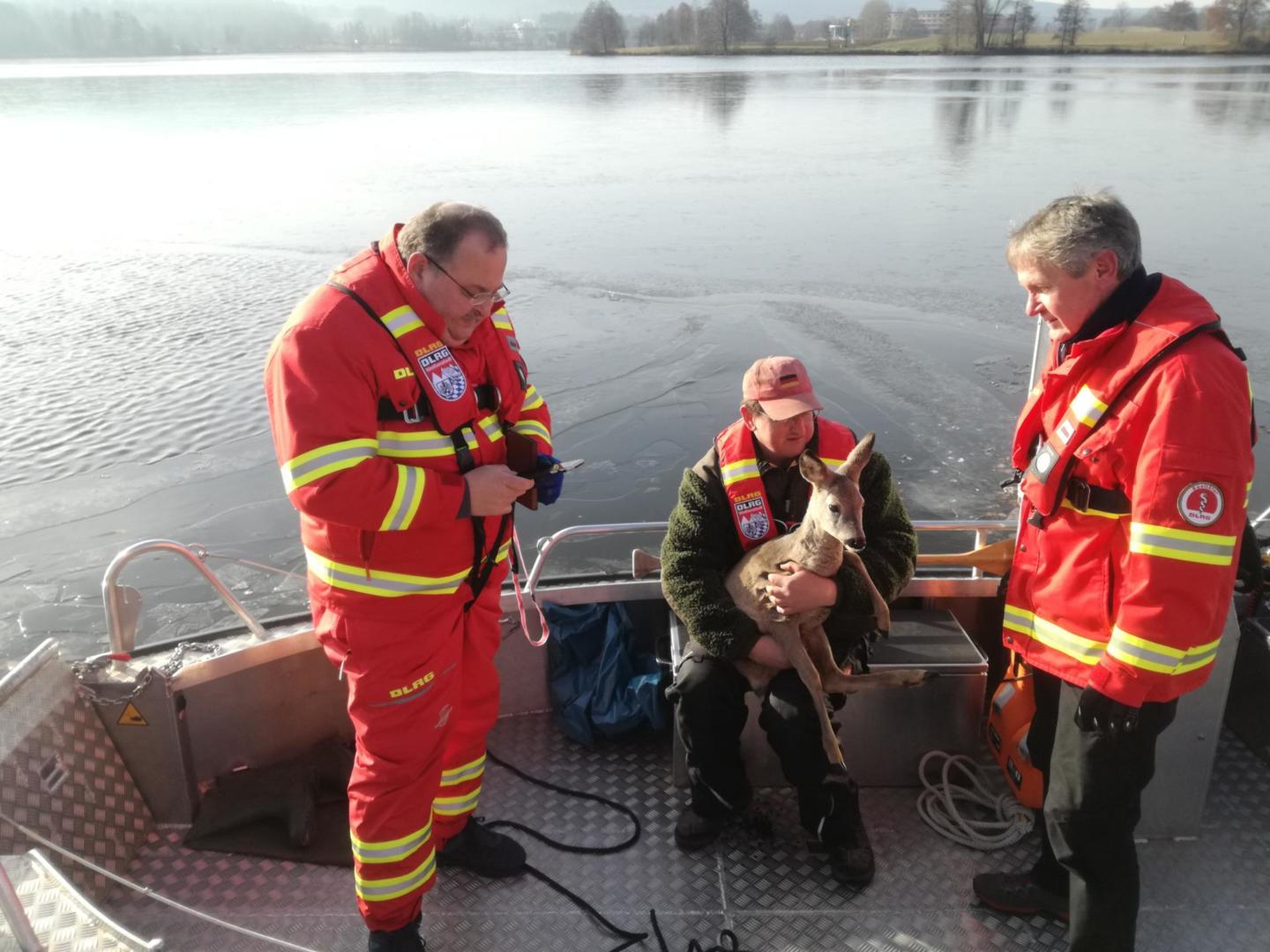 Die DLRG Orts­grup­pe Wei­ßen­stadt hat­te kürz­lich einen Ein­satz der etwas ande­ren Art zu bewäl­ti­gen: Ein Reh hat­te sich auf dem halb zuge­fro­re­nen See ver­lau­fen und kam nicht mehr auf die Bei­ne. Nach­dem Spa­zier­gän­ger und Mit­ar­bei­ter des gKU dar­auf hin­ge­wie­sen hat­ten, war die DLRG gleich zur Stel­le und ret­te­te das ver­un­si­cher­te Tier.