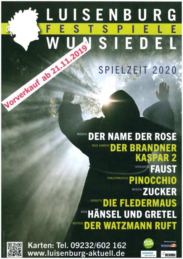 Bei Rück­ab­wick­lungs­wün­schen wen­den Sie sich bit­te direkt an die Lui­sen­burg-Fest­spie­le in Wun­sie­del unter Tele­fon 09232 602–162. Nähe­re Details der Ver­schie­bung kön­nen Sie auch ein­se­hen unter https://​www​.lui​sen​burg​-aktu​ell​.de/​v​e​r​s​c​h​i​e​b​u​ng/.