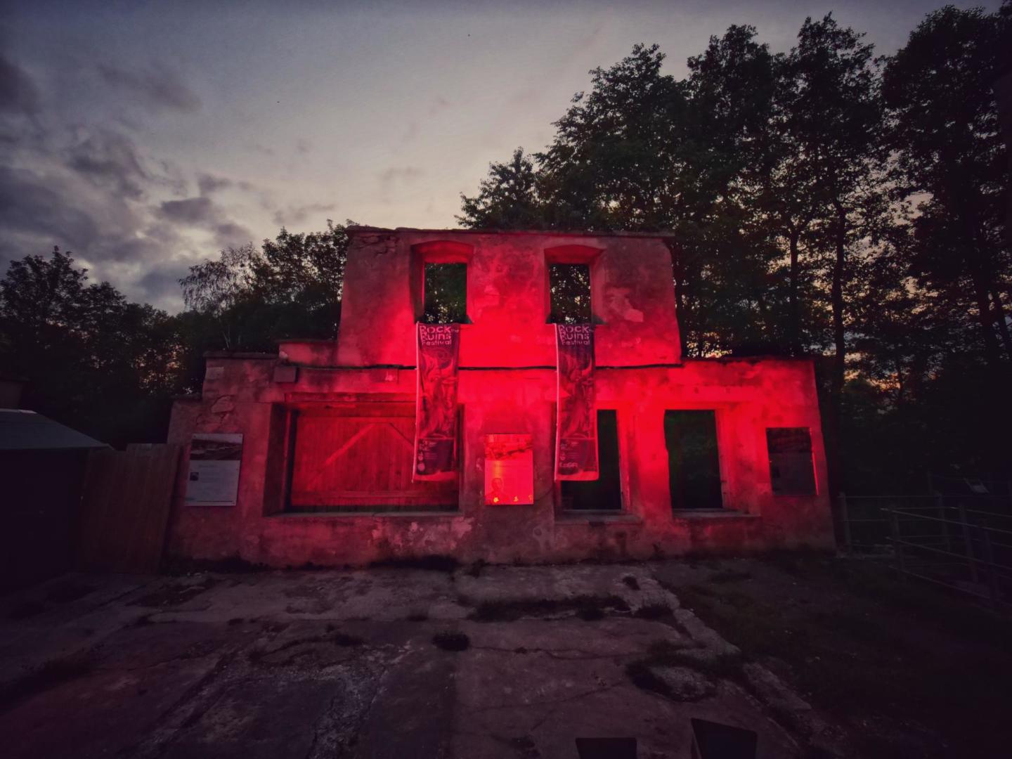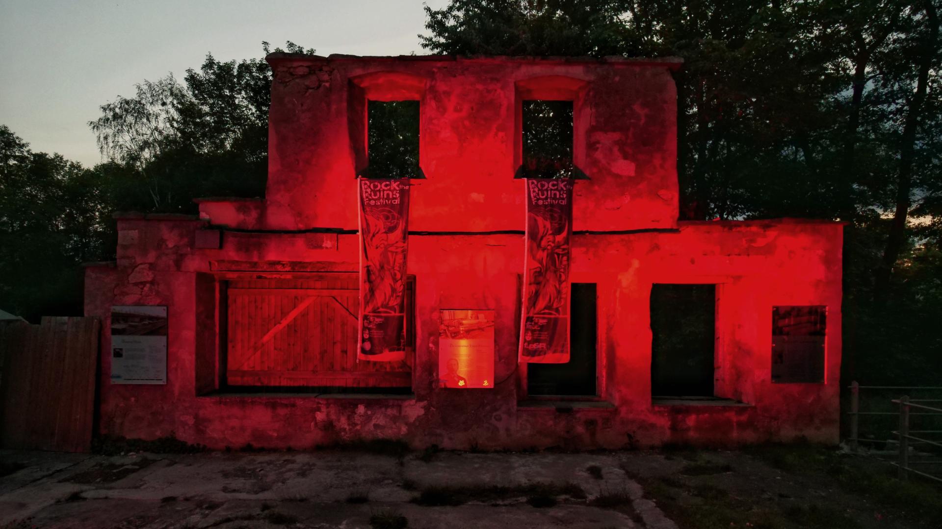 Unsere „Gruh“ (weißenstädterisch für Crew) war mit Eifer dabei, organisierte alles und setzte damit ein Zeichen. Die Ruinen im historischen Kurpark Weißenstadt, üblicherweise Veranstaltungsort für das jährlich im August stattfindende Rockfestival Rock the Ruins, erstrahlten für einige Stunden in intensiv rotem Licht.