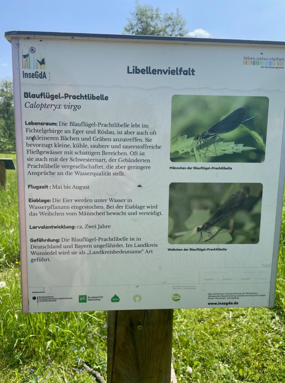 Eine Attraktion ist im Zuge dessen am Weißenstädter See entstanden: Das Libellen-Labyrinth. Auf der städtischen Wiesen-Fläche begannen Gärtner des städtischen Bauhofes bereits im vergangenen Jahr damit, in Absprache mit dem Projektträger ein Labyrinth anzulegen. Im Herbst 2022 kamen verschiedene Informationstafel hinzu. Inzwischen konnten die Gräser und Wildkräuter wachsen, die nun durch einen Labyrinth-Weg durchzogen werden.