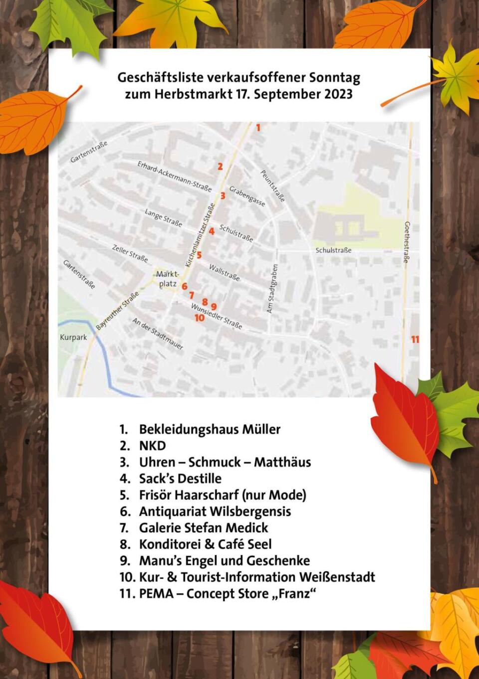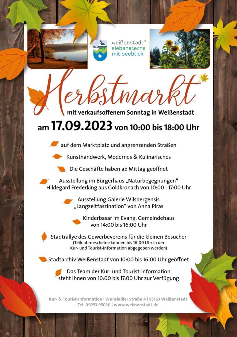 Der Herbstmarkt in Weißenstadt findet am Sonntag, 17. September 2023 statt. Auf dem Marktplatz und in den angrenzenden Straßen bieten Händler aus der Region Kunsthandwerk, Dinge des Alltags, Flohmarktware und Kulinarisches an. Los geht das Markttreiben um 10 Uhr.