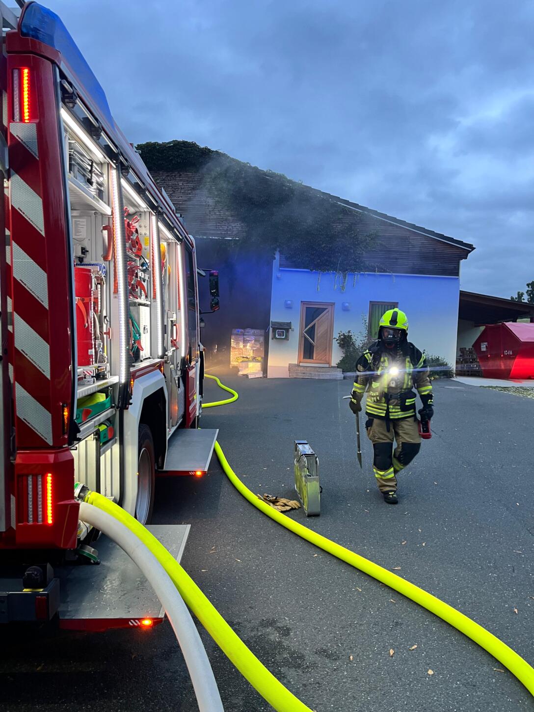 Ein Gebäudebrand der Stufe B3 mit einer vermissten Person in der Druckerei Späthling „Druckkultur“.
