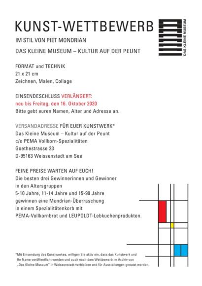 Kunst-Wettbewerb Piet Mondrian Verfasst am 14. Juli 2020 Das Kleine Museum in Weissenstadt veranstaltet einen Kunst-Wettbewerb Mondrian. Interessierte im Alter von fünf bis 99 Jahre können Zeichnungen, Gemälde oder Colla…