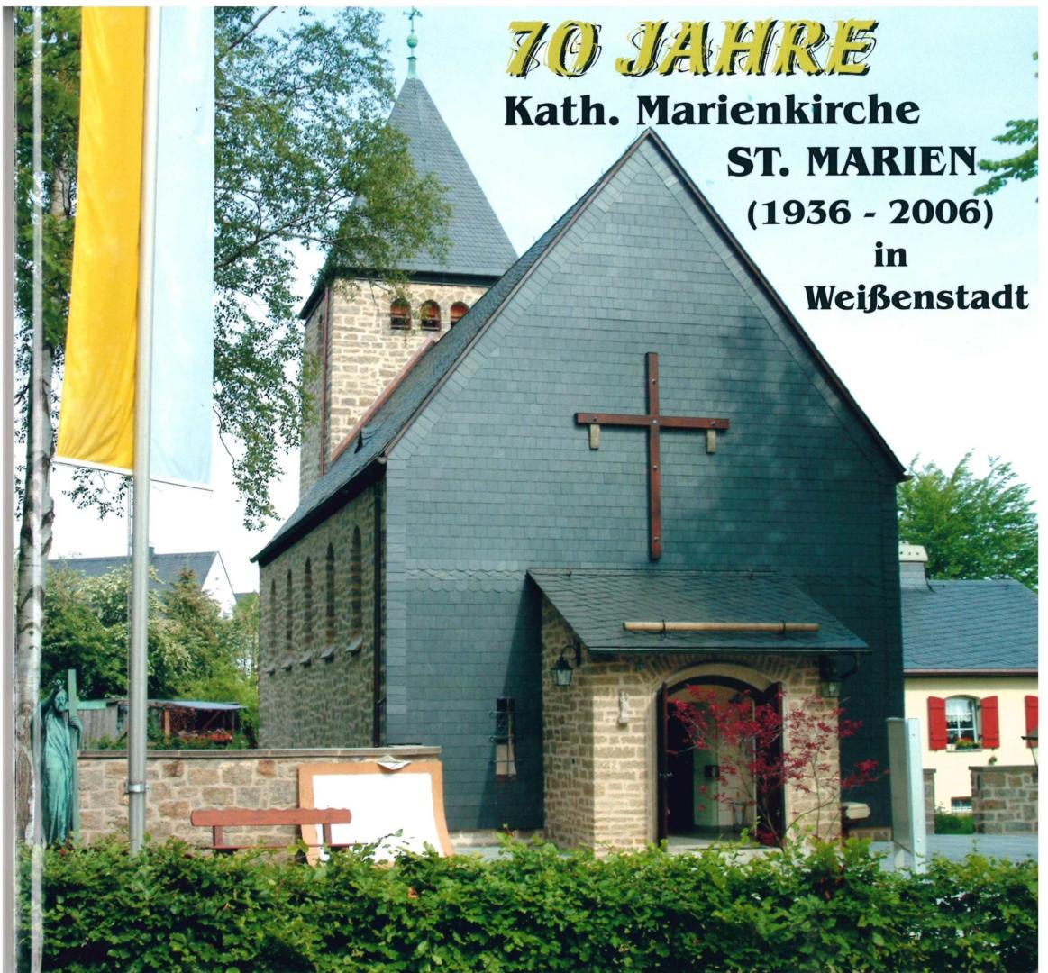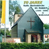 The first catholics came to Weißenstadt due to the construction of the railway at the turn of the century. Thus, the first prayer room was set up in master builder Peruzzis home on the corner of Gartenstraße/Badstraße. At that time services were held every two to three weeks by the clergyman of Marktleuthen. The first catholic church in Weißenstadt was inaugurated near Goethestraße in 1936. The church music flourished when Anton Böhme fled to Weißenstadt after the war. The new parsonage was inaugurated in 1964. An organ was finally added to Marienkirche in 1970.