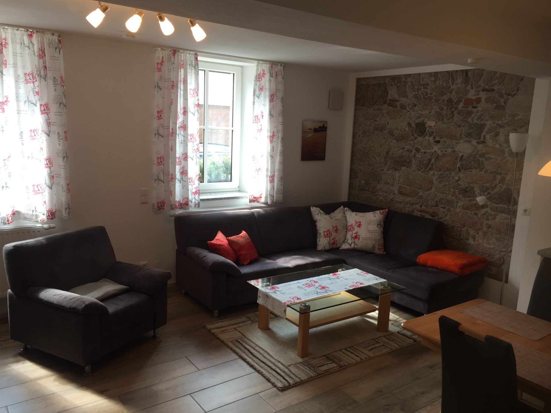 Neue Ferienwohnung, 63 qm (barrierefrei) liegt im EG und ist im gesamten Wohnbereich mit Fliesenboden/Fußbodenheizung ausgestattet, zusätzlich Heizkörper.