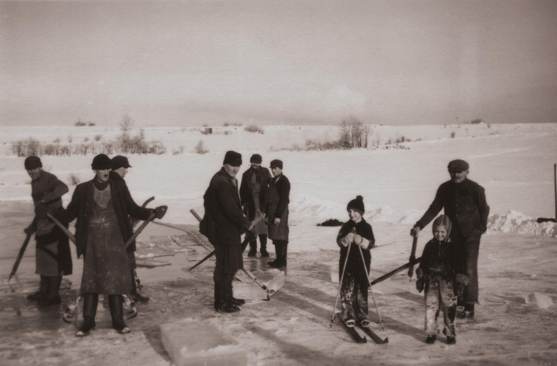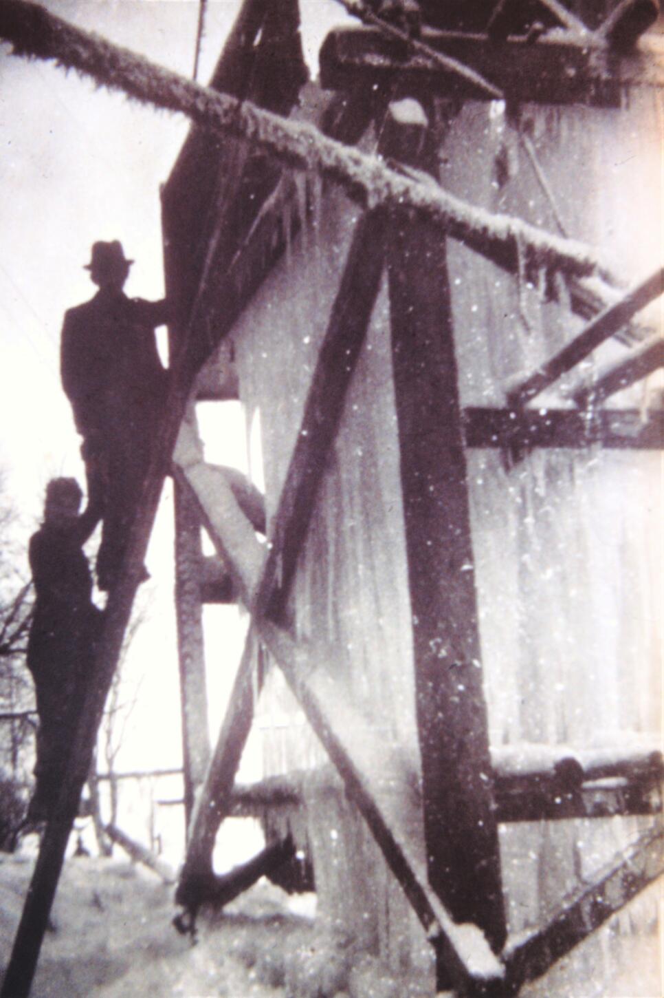 Die Weißenstädter Brauerei Blechschmidt gewann das benötigte Eis an einem Eisgerüst beim Kellerhaus. Ansicht aus dem Jahr um 1940.