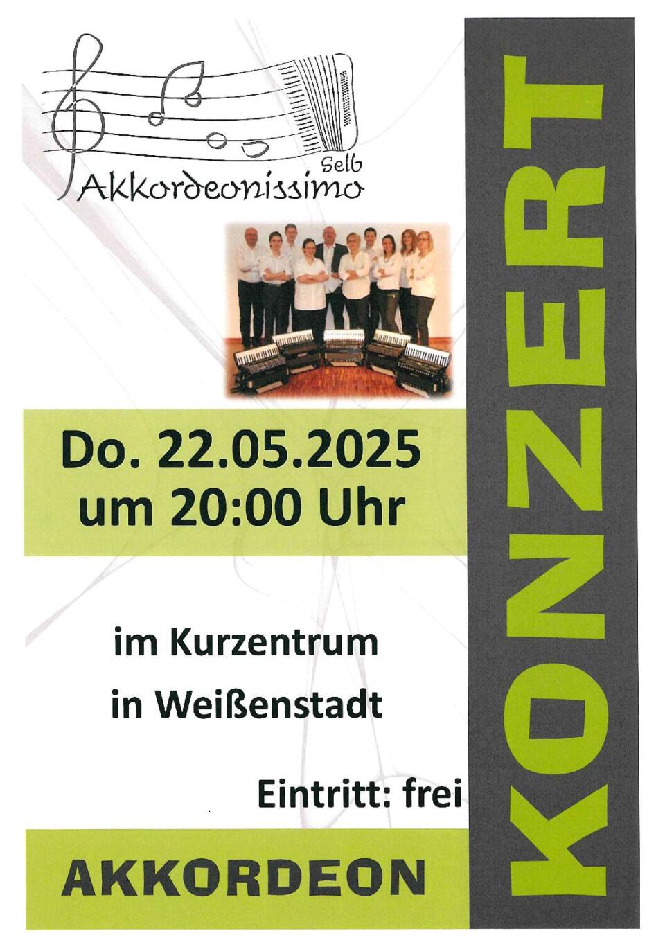 Unter der Leitung von Mathias Elser bietet die Gruppe “Akkordeonissimo Selb n.e.V.” unter anderem Hits von Simon & Garfunkel und Eric Clapton dar.