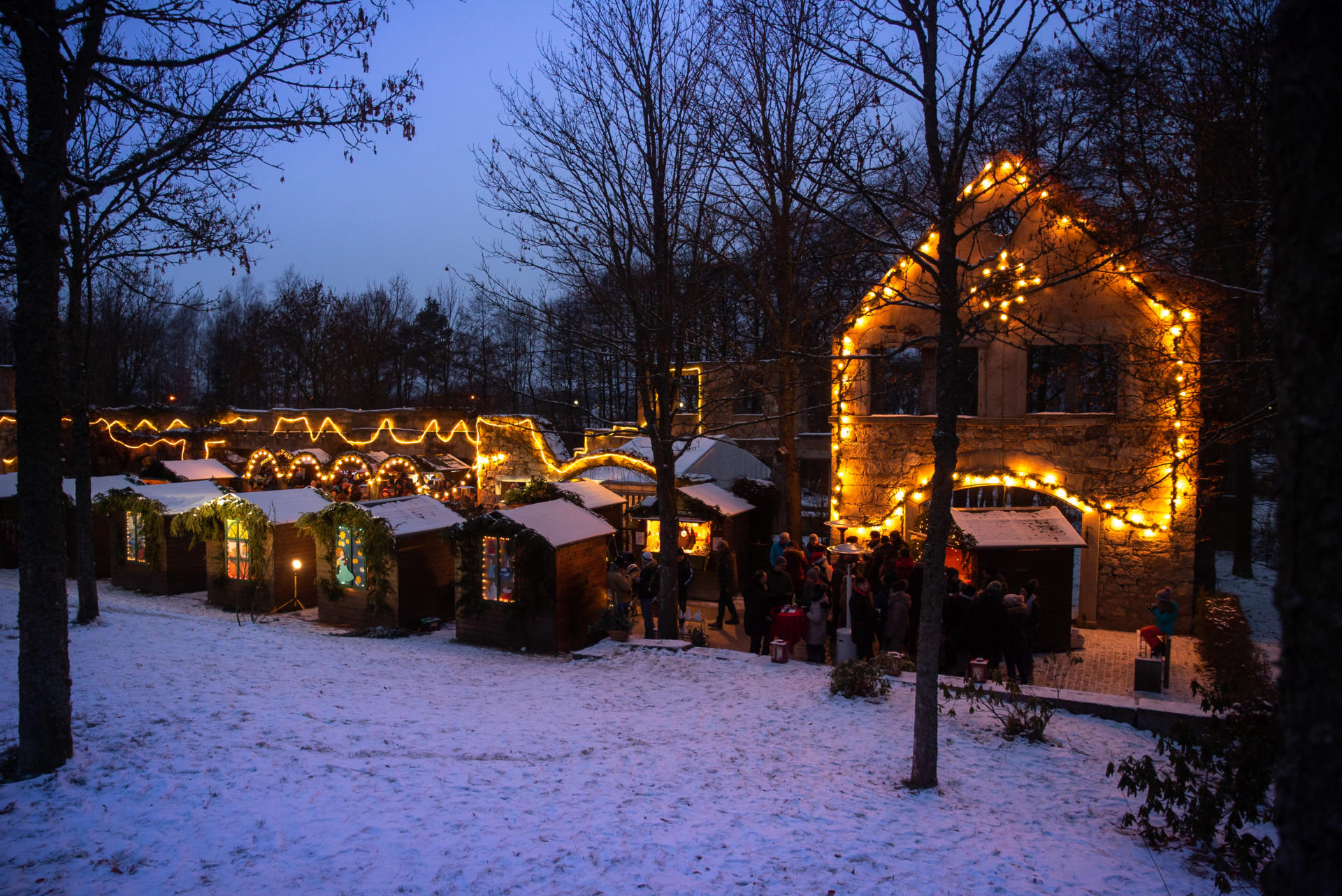 Zwischen den Ruinen der ehemaligen Steinschleiferei im Kurpark von Bad Weißenstadt werden traditionell Weihnachtsschmuck, Lebkuchen und Glühwein angeboten. Ein Rahmenprogramm sorgt für romantische Weihnachtsstimmung.